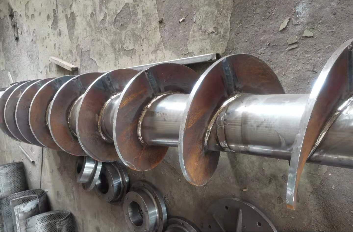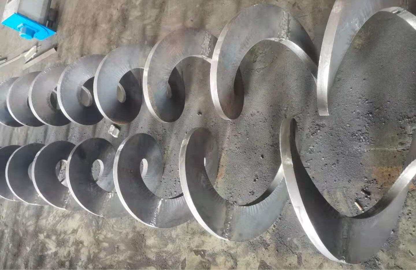 我公司可生產制作不同規格的螺旋葉片,以滿足客戶的不同需求。眾所周知,螺旋葉片主要用于輸送粘度較大和可壓縮性物料,這種螺旋面型,在完成輸送作業過程中,同時具有并完成對物料的攪拌、混合等功能。我司主要采用冷軋和澆鑄的方式來制作螺旋葉片,具有生產效率高、節省原材料、質量好、硬度高、耐磨性好等優點,主要用于各種規格的輸送機及壓榨機主軸上。